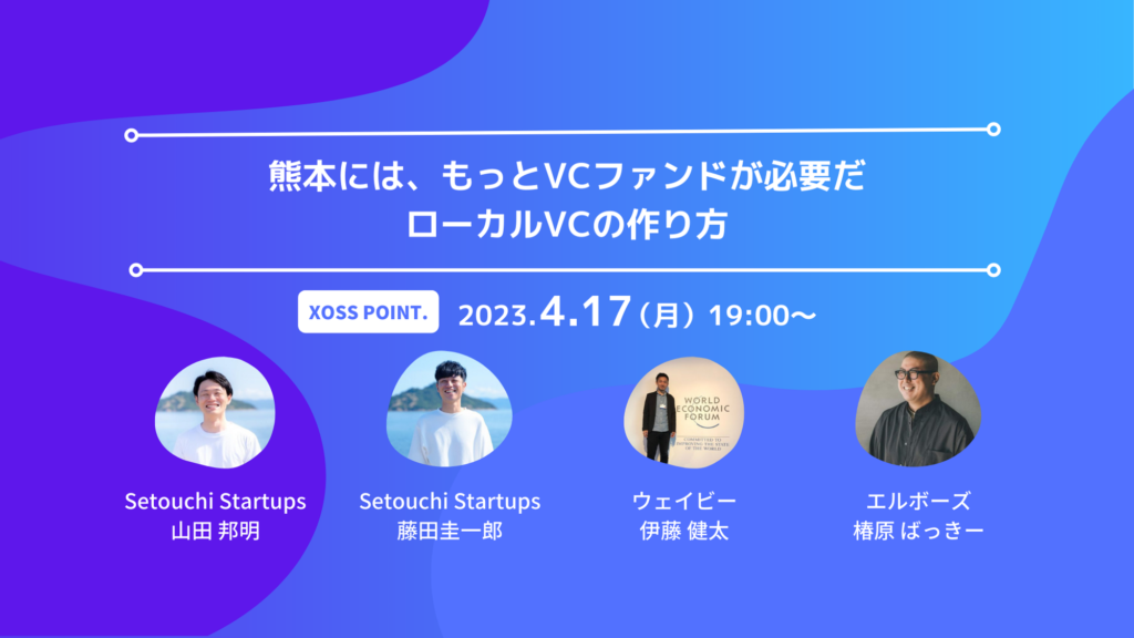 「”誰と、どこで、何をするか”を、もっと自由に。」をミッションにかかげ、企業のデジタルプロダクト開発支援を行う株式会社エルボーズ(本社:熊本県熊本市、代表取締役:小谷草志)は4月17日、Setouchi Startups(通称:瀬戸内VC)をゲストに迎えイベント「熊本には、もっとVCファンドが必要だ。ローカルVCのつくり方。」を開催します。